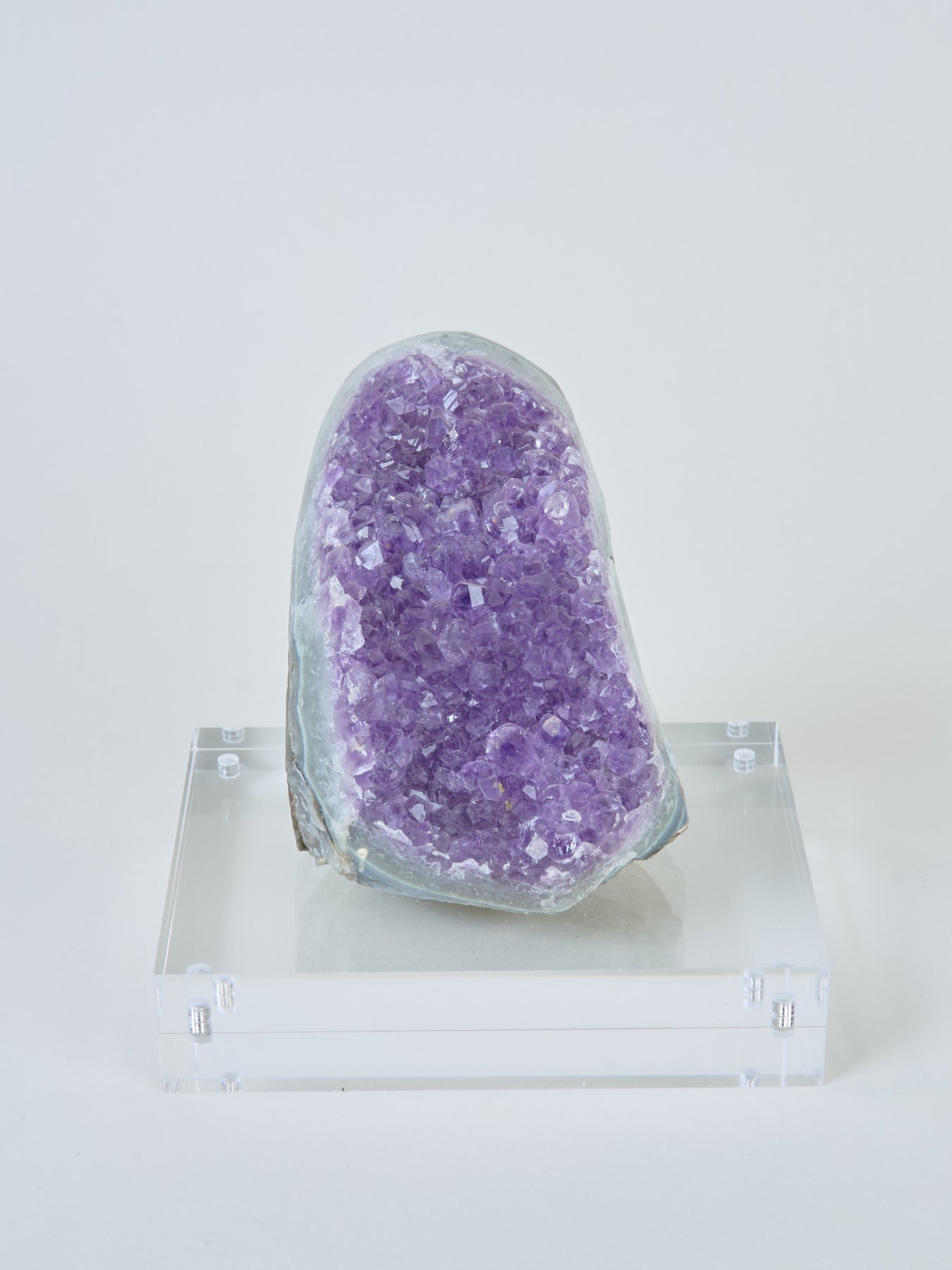 Diese aus Brasilien stammende Amethyst-Druse ist ein Interior-Piece von sehr schöner Qualität. Das tiefe Violett und die starke Form machen dieses Unikat zu einem besonderen Stück.