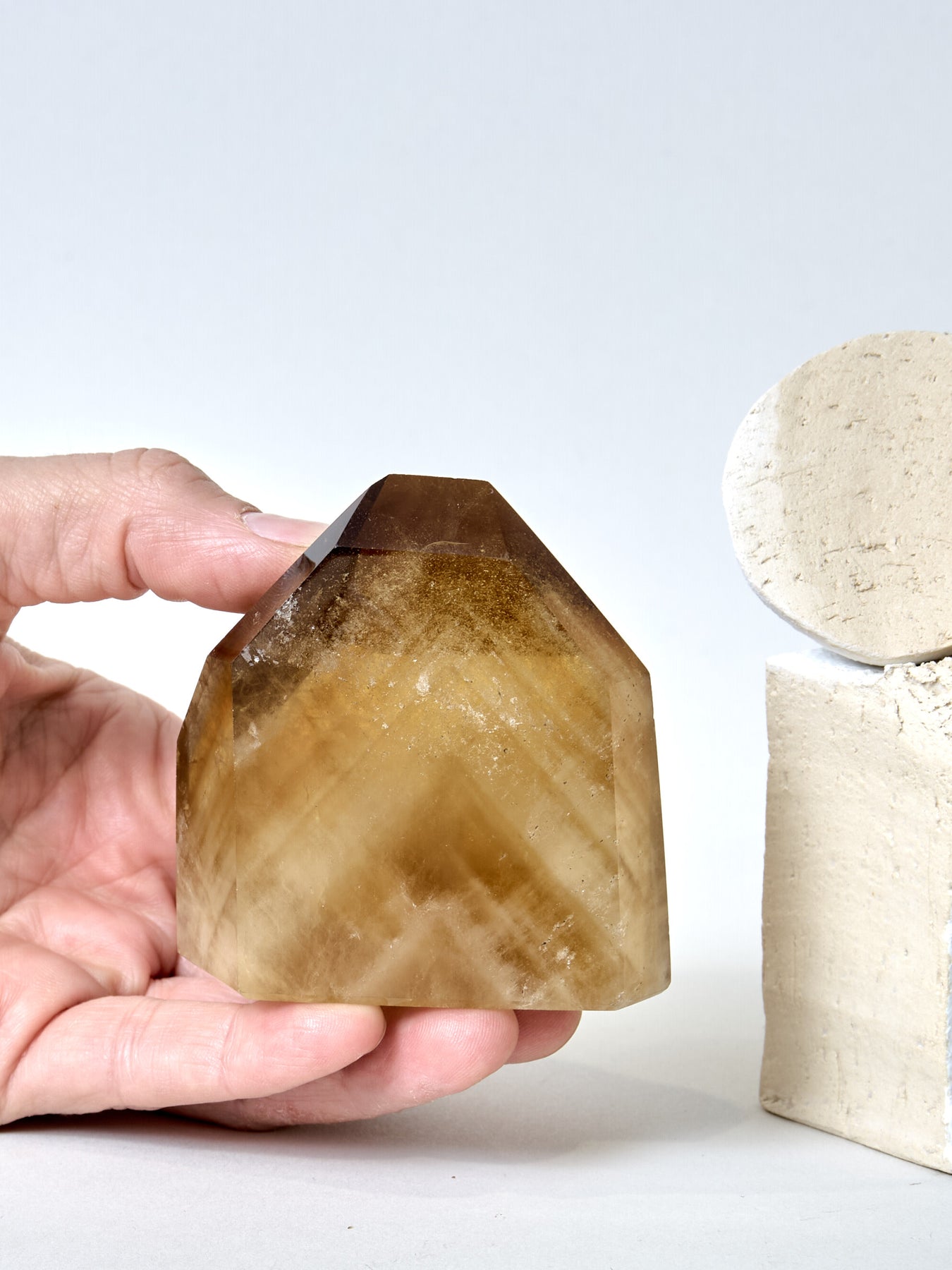 Phantome entstehen, wenn der Kristall in verschiedenen Wachstumsphasen neues Leben annimmt – sie erzählen von Wandlung, Weisheit und innerem Wachstum. Ihre dreieckigen Muster, an Pyramiden erinnernd, machen diesen Stein zu einem starken Begleiter für Meditationsprozesse und innere Transformation.