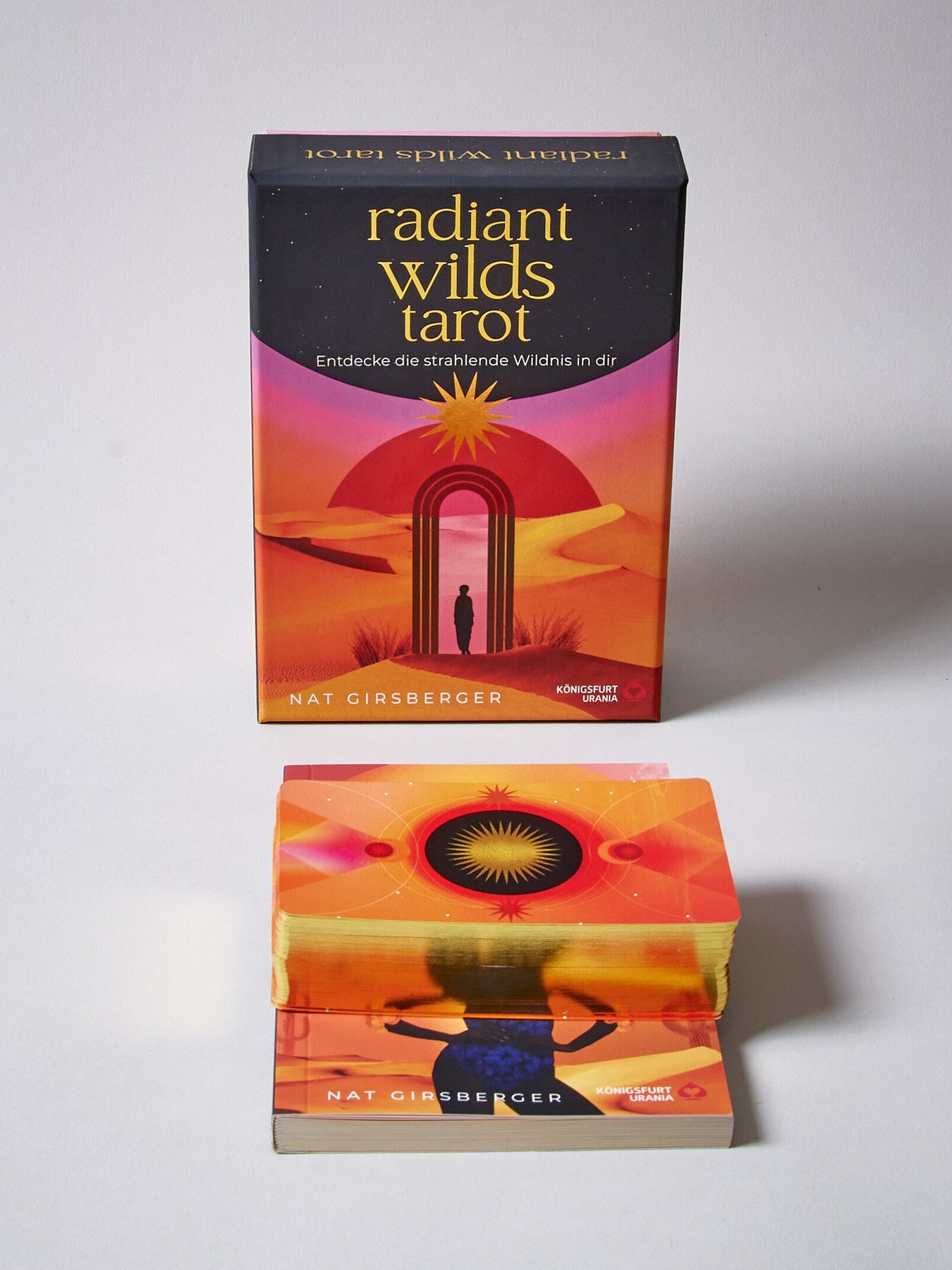 Die Künstlerin Nat Girsberger hat die traditionelle Tarot-Symbolik einzigartig in leuchtenden Bildern von interstellaren Landschaften mit modernen Figuren gestaltet. Der beiliegende umfangreiche "Atlas" hilft dir, durch deine traumhaften Wüstenräume zu navigieren und die Karten zu verstehen. Begib dich auf eine spannende Reise und erforsche diesen strahlenden Ort in dir, an dem du bereits alle Antworten auf deine Lebensfragen weißt ...