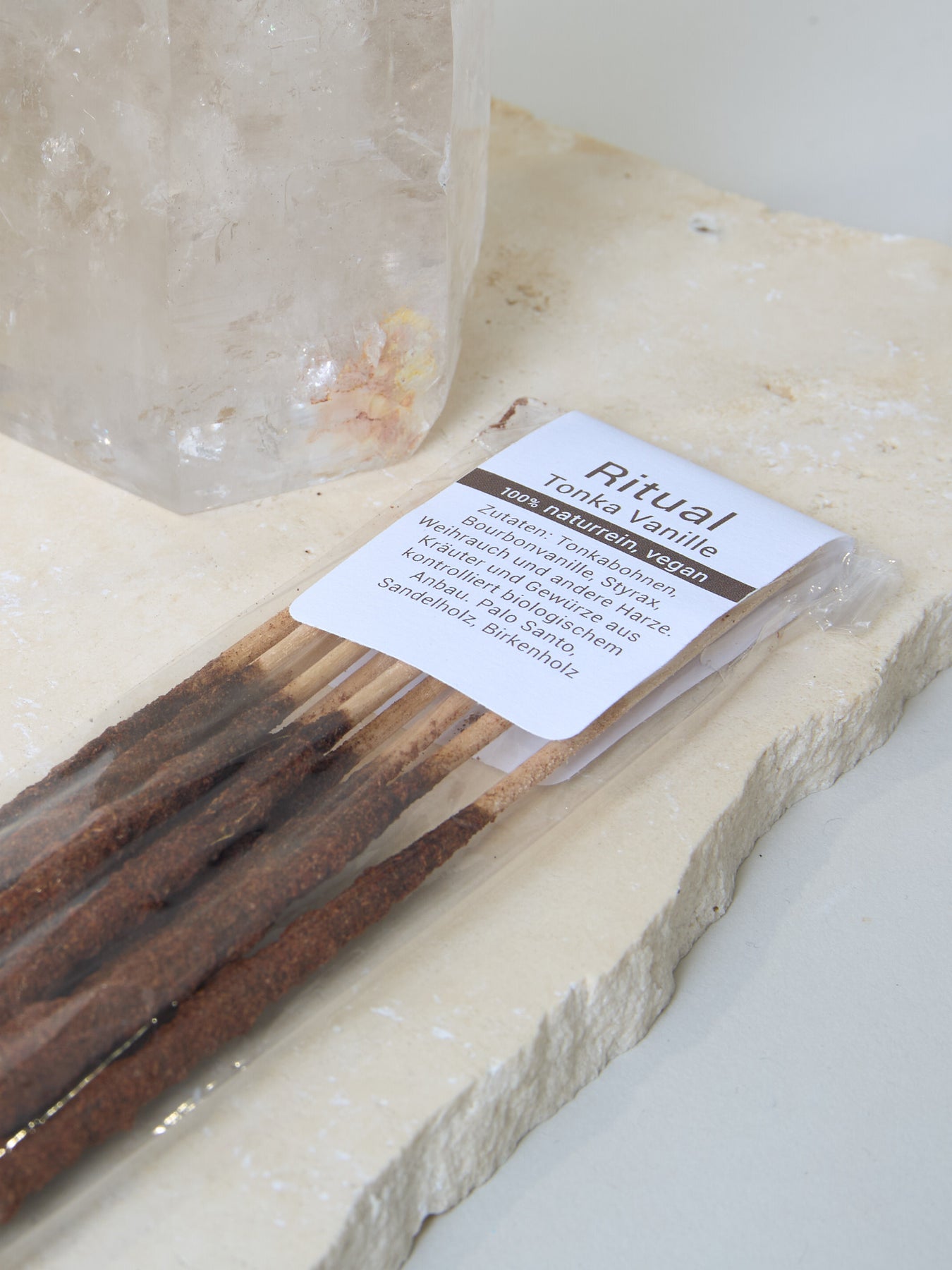 Tonka-Vanille-Räucherstäbchen sind die neue Bereicherung in der Ritual-Linie. Es ist sicher die sinnlichste Mischung innerhalb dieser Linie. Ihr Duft vermittelt Sanftheit, Hingabe und eine wundervolle Form von Selbstannahme. Man sagt, der Tonkabohne sogar eine aphrodisierende Wirkung nach …