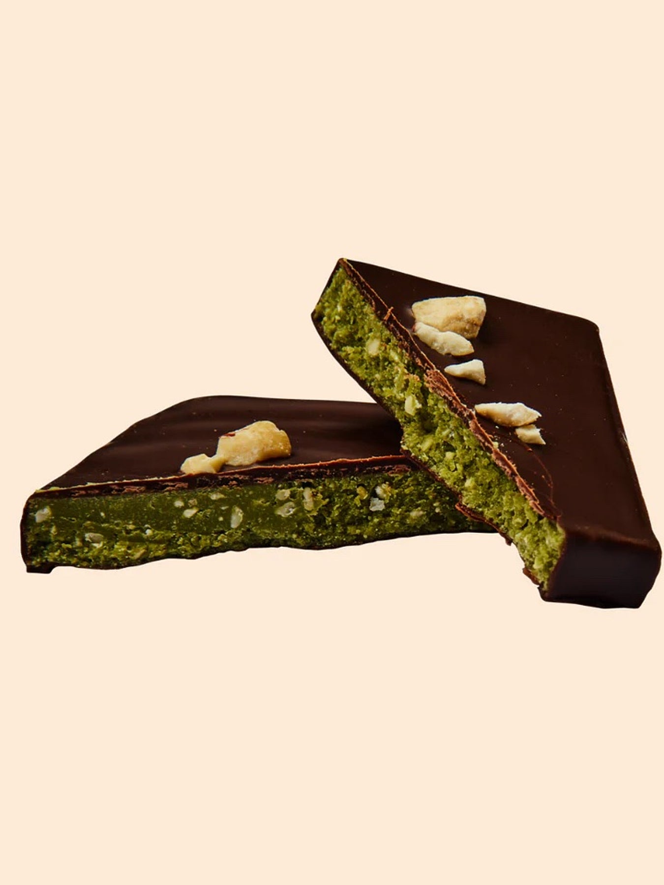 Diese Praline verbindet Roh-Cacao mit Cashew & Matcha.