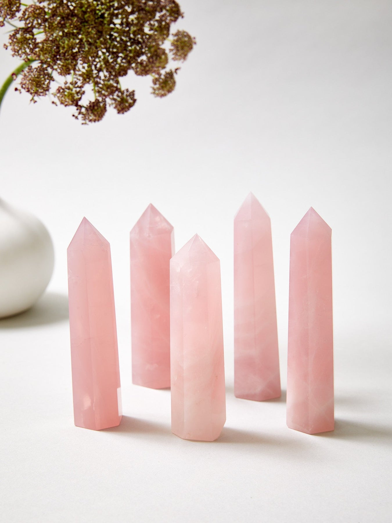 Die Form der Spitze bündelt die harmonische, liebevolle Energie des Rosenquarzes und gibt ihr eine klare Richtung. Sie ist wie ein Leuchtturm, der Urvertrauen, Wärme, Zärtlichkeit und Mitgefühl ausstrahlt.