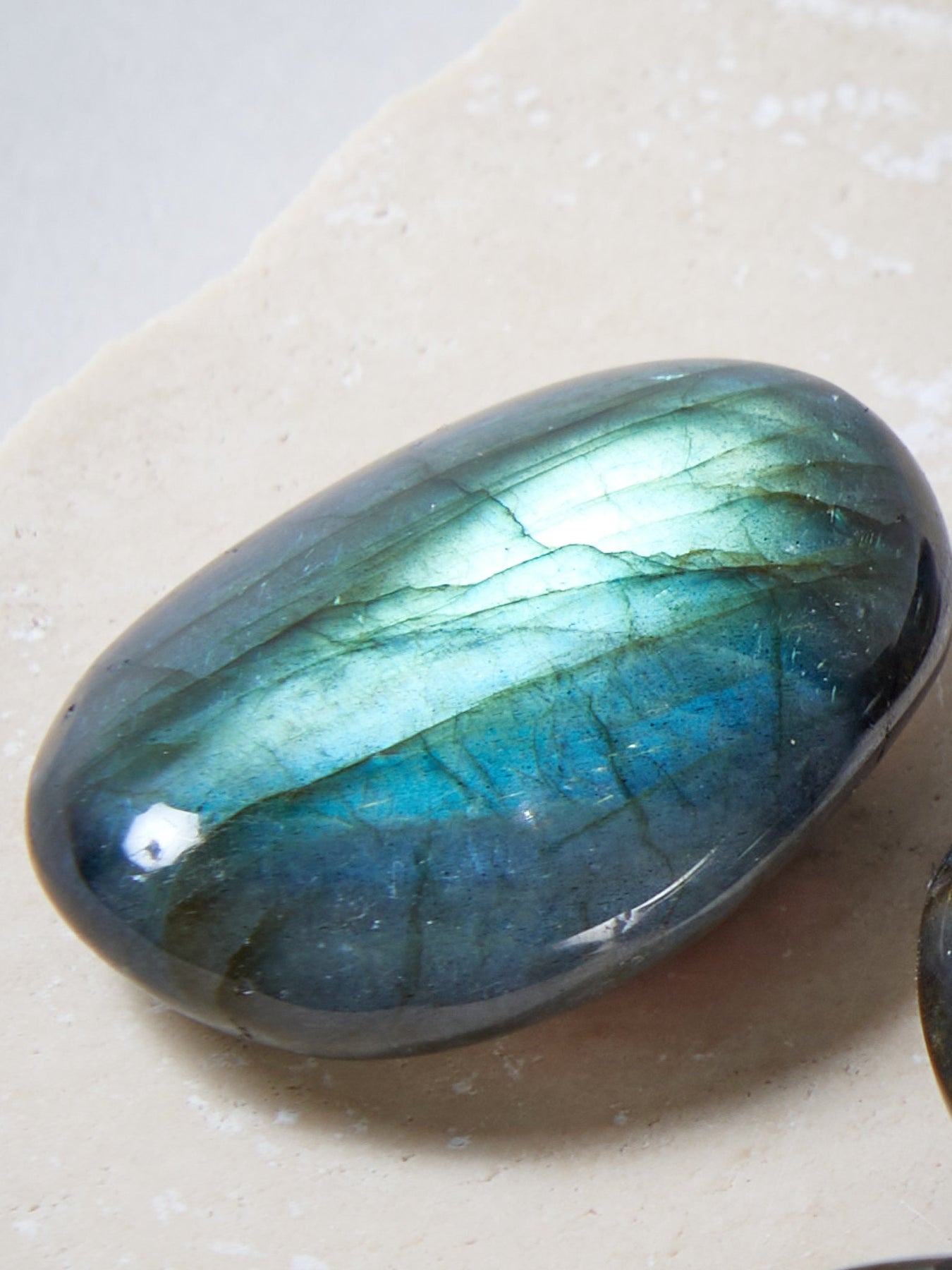 Dieser einzigartige Trommelstein erinnert dich daran, ganz du selbst zu sein. Labradorit ist der Stein der Authentizität und regt dich dazu an, Masken und Rollenmuster abzulegen und dein wahres Selbst auszudrücken. Seine schillernden Farben, die an Polarlichter erinnern, fördern Ideenreichtum, Kreativität und erwecken eine kindliche Begeisterung. Labradorit unterstützt die Selbstwahrnehmung, hilft, Illusionen zu durchschauen und negative Gedankenmuster zu transformieren. Perfekt für deinen Arbeitsplatz oder überall dort, wo du dich authentisch zeigen möchtest und deinen inneren Funken entfachen willst.