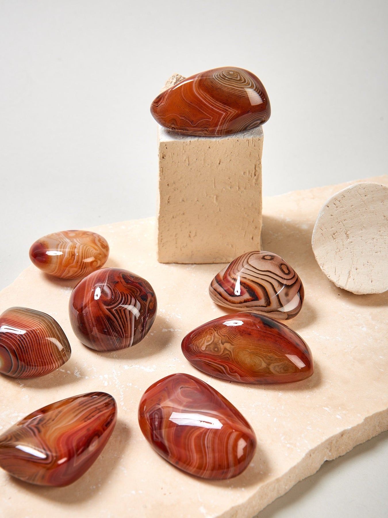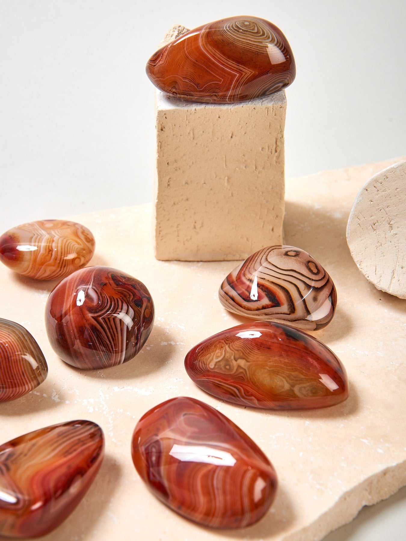 Wunderschöne Streifen-Achate aus Madagaskar in intensiven Farben, glänzend poliert, in kleiner Größe.