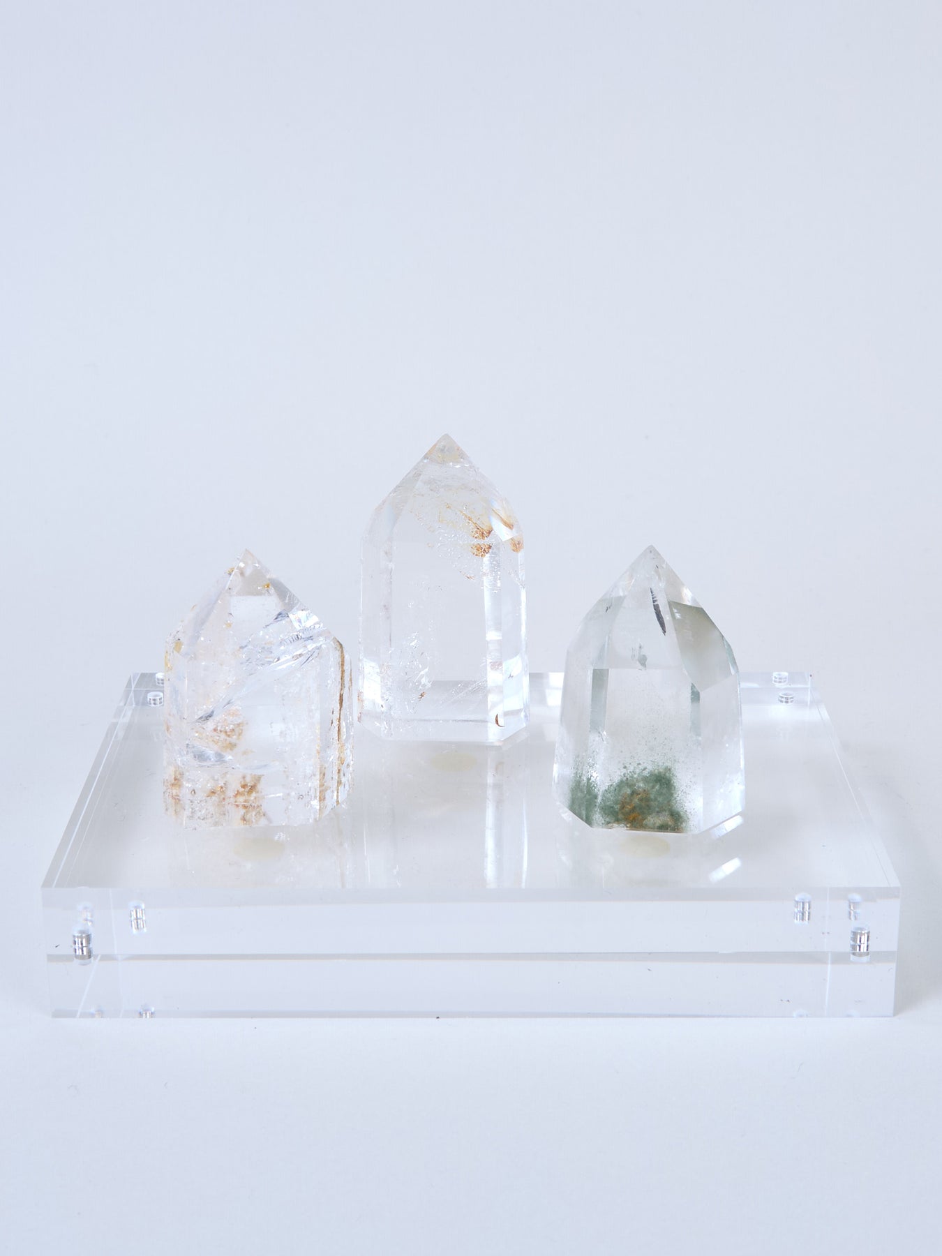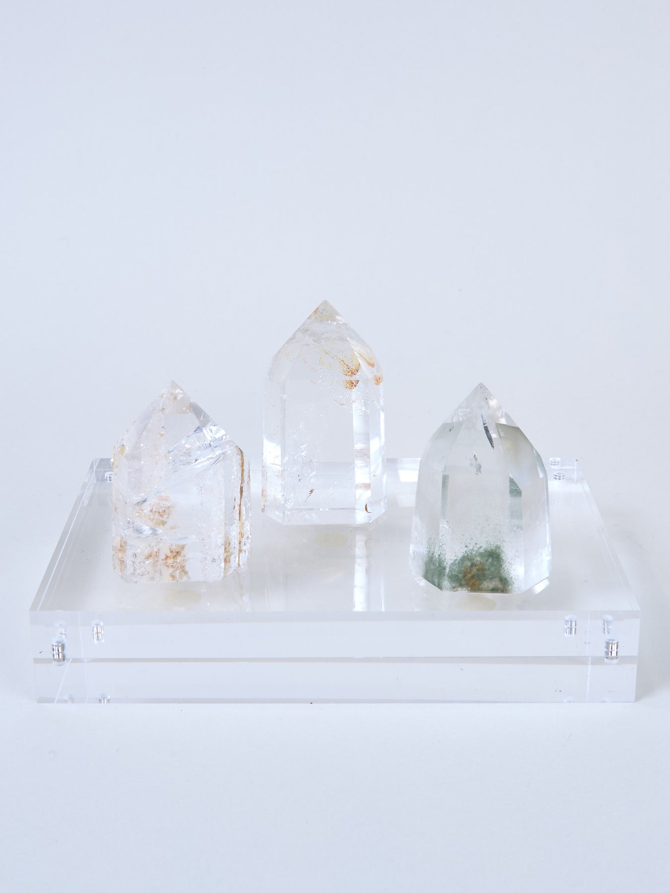 Diese Kristalle sind Inklusionsquarze (oder auch Schamenquarze genannt) und haben ein wahrhaft lichtvolles Strahlen. Ihr außergewöhnliches Innenleben offenbart ganze Welten, die durch Regenbögen durchzogen werden. Man könnte stundenlang in sie hineinschauen und immer wieder etwas Neues entdecken.