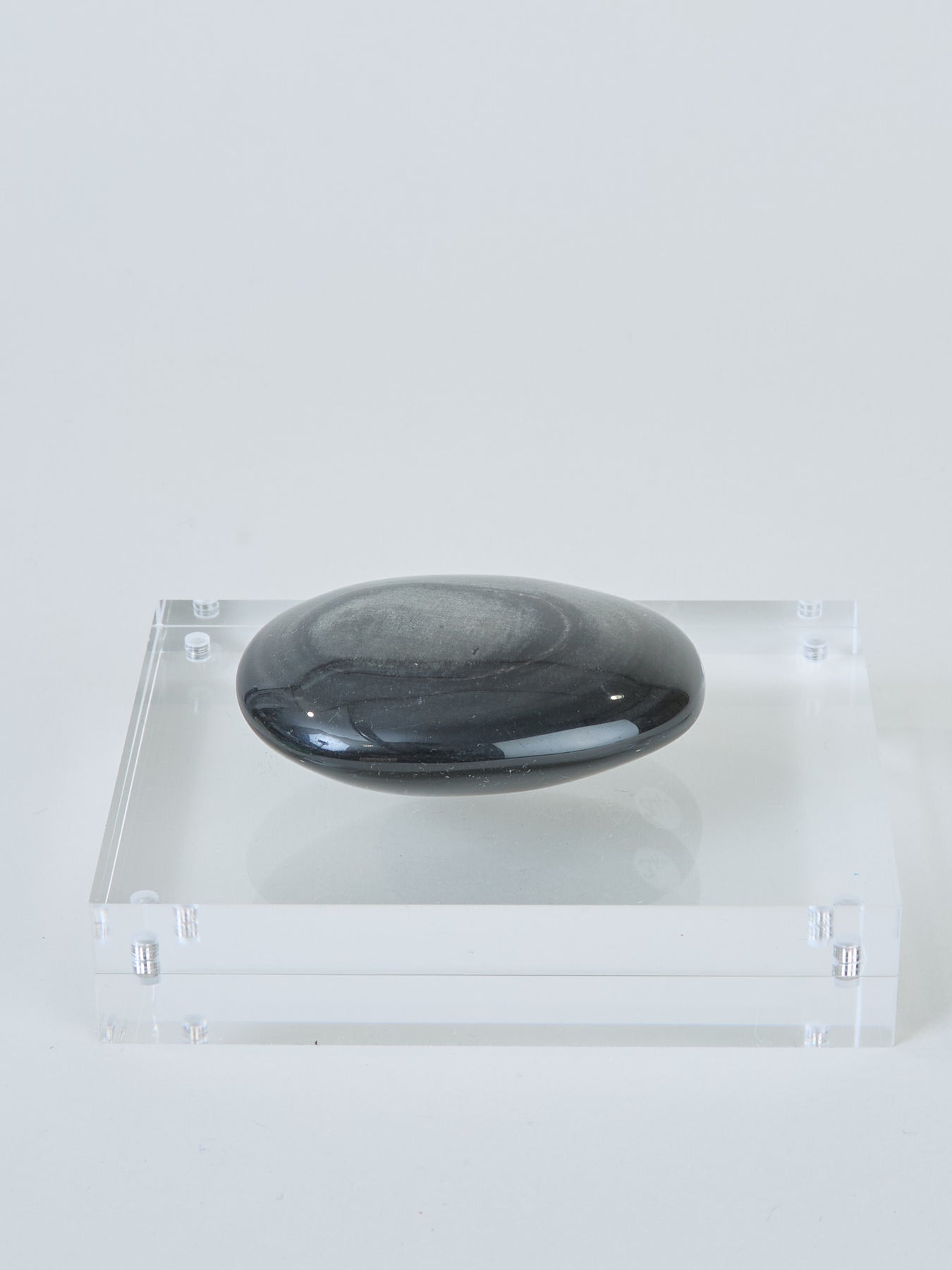 Diese großen Handschmeichler aus silbernem Obsidian haben eine ausgesprochen starke Qualität und liegen perfekt in der Hand. Mit ihrer schimmernden Oberfläche lädt sie dich ein, in die Tiefen deiner inneren Welt zu tauchen.