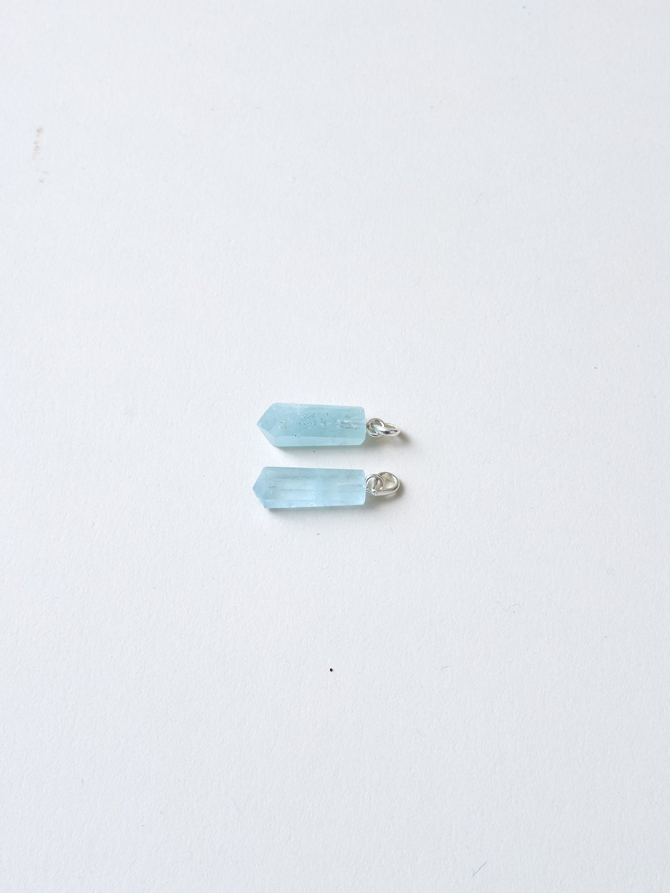 Die Anhänger sind ca. 20–25 mm. Es handelt sich um Natur-Aquamarin, der als Spitze geschliffen ist. Der Stift ist 925er Silber.
