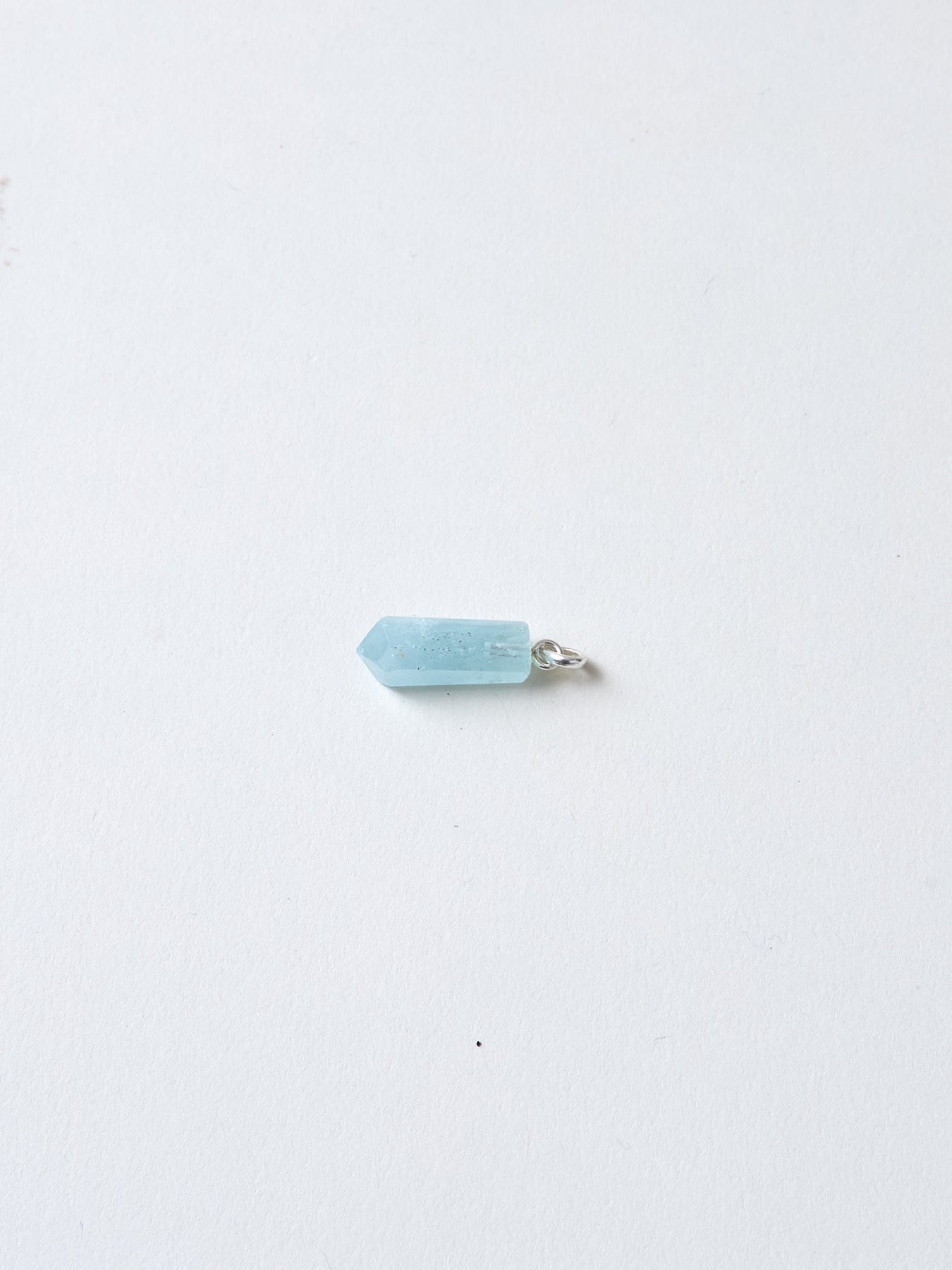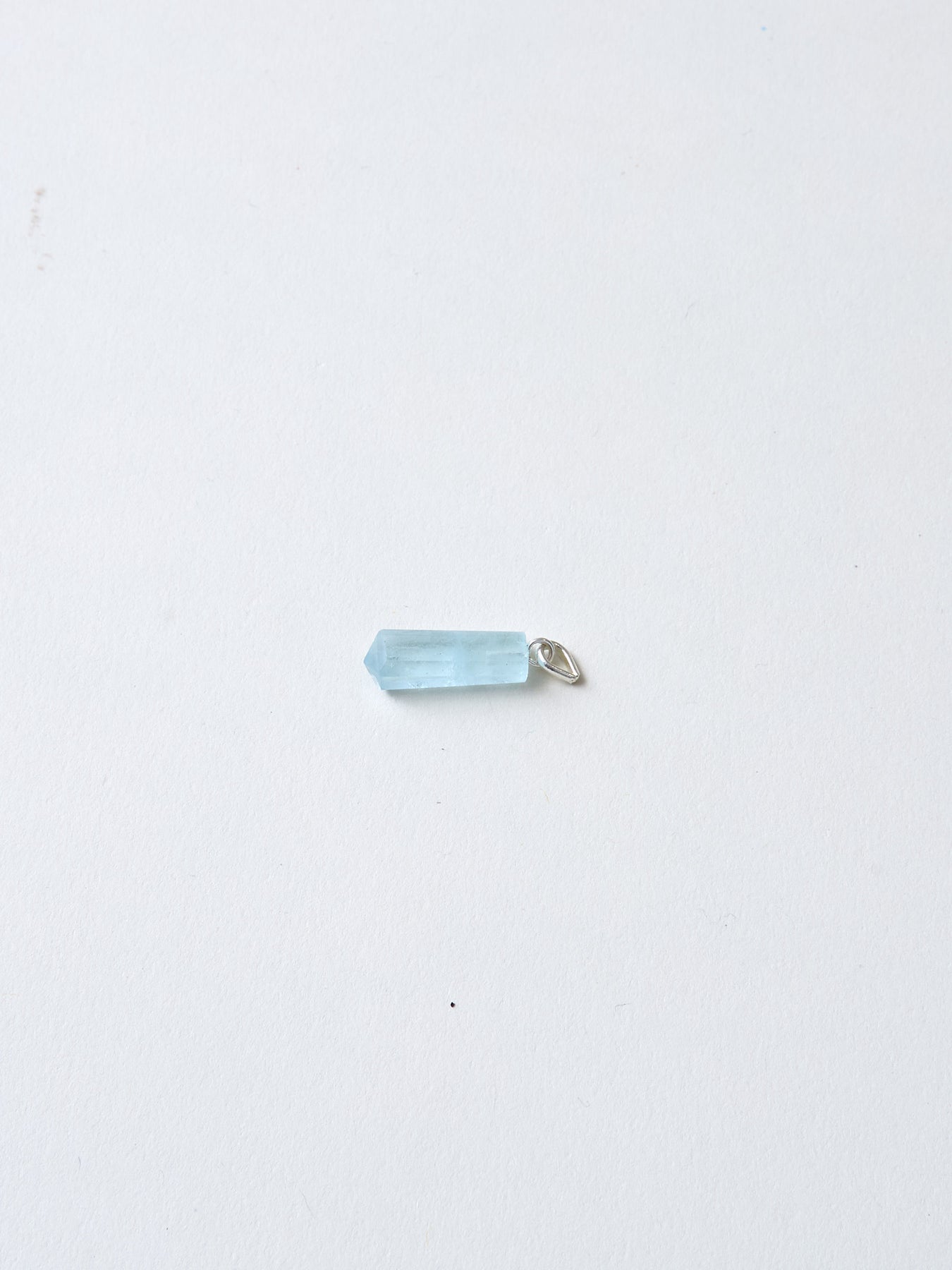 Dieser Aquamarin Anhänger ist etwas Besonderes. Er ist in einen Silberstift gefasst, wodurch der Kristall ganz pur und unaufgeregt wirken kann.